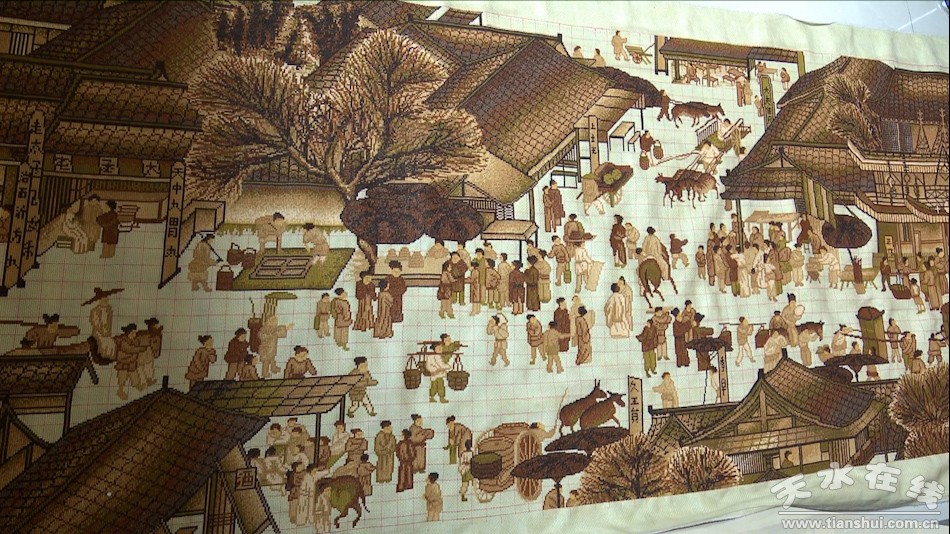 秦州区融媒体中心9月16日讯 (记者 张敏 张丹阳)800多个人物,80多头只牲畜,180多株树木,各种路桥、车船、房屋……穿越时空的北宋故事,详尽而生动,广阔而鲜活。七旬老人王秋兰花费了10年时间完成一幅长达20余米、宽1米的十字绣作品《清明上河图》,今天我们一起来关注她和这幅作品的故事。