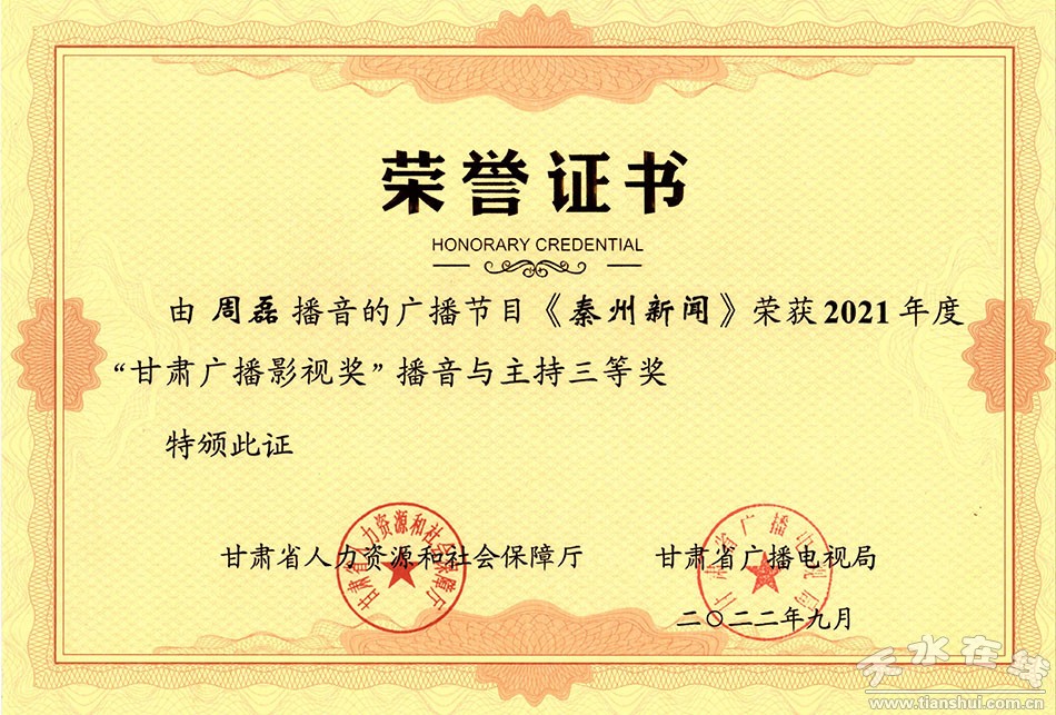 秦州区融媒体中心10月2日讯 日前,《2019-2021年度甘肃省广播影视奖》评选结果揭晓,秦州区融媒体中心6件作品获奖。其中,电视系列报道《垦荒复耕夯基藏粮于地 务农重本确保粮食安全》荣获一等奖。