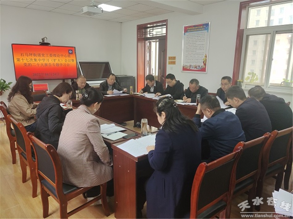 石马坪街道召开党的二十大精神专题学习会。会议强调,街道全体上下要把学习宣传贯彻党的二十大精神作为当前和今后一个时期首要政治任务,迅速掀起学习热潮,深刻领悟报告中提出的新思想、新观点、新论断,紧密结合新形势、新任务、新要求,扎实做好当前各项工作。要坚持以习近平新时代中国特色社会主义思想为指导,认真学习党的二十大精神,进一步统一思想、凝聚共识,努力把学习的过程变成不断拓展思路、研究问题、推动工作的过程。