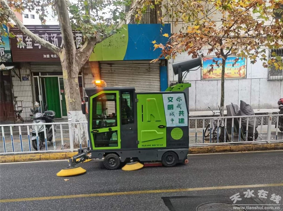 一是科学调度,采取人机结合作业模式。推行网格员、辖区所、分管领导等三级联动,通过网格监管、分片巡查、专人盯靠重点路段,每日巡查检查辖区道路落叶清理情况,发现问题,立即反馈,及时处置,确保落叶清扫工作及时有序开展。利用机械化覆盖面积大、作业效率高的特点,充分发挥机械化作业优势,延长机扫作业时间,出动环卫工人600余人次,每天出动洗地车15台、电动多功能扫地车10台、压缩车6台,实行“机扫+人工”的作业模式,循环不间断清扫主次干道落叶,道路两侧绿化带内的枯枝树叶、碎纸屑等垃圾杂物,并重点在上午11时、下午4时等落叶较多的两个时间段加强作业强度。
