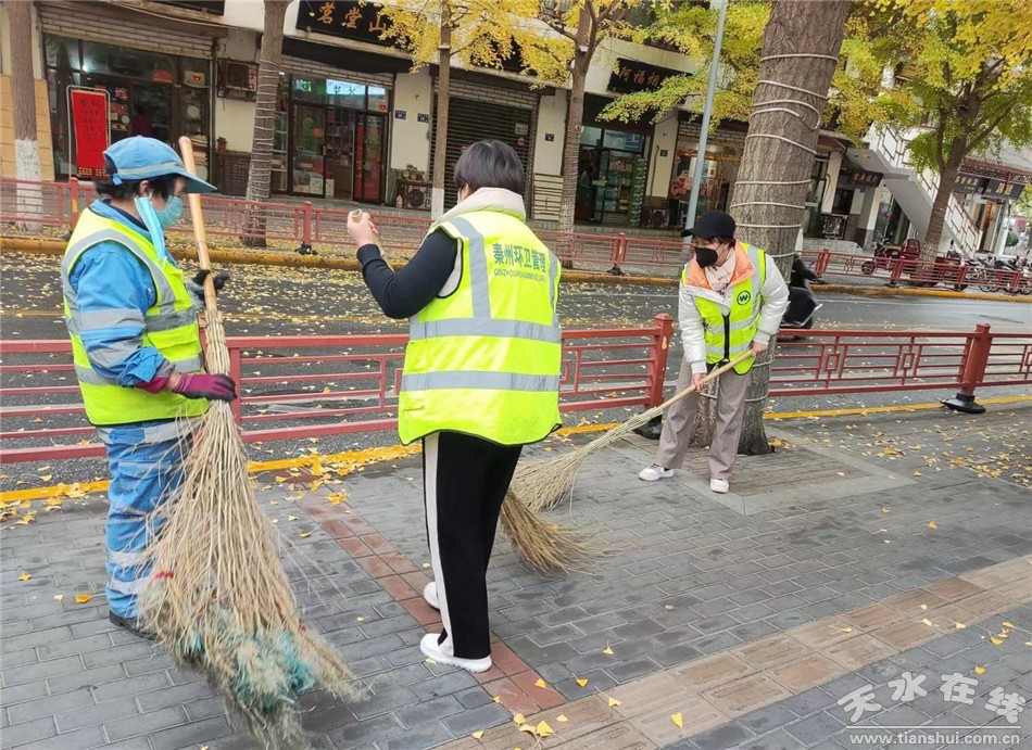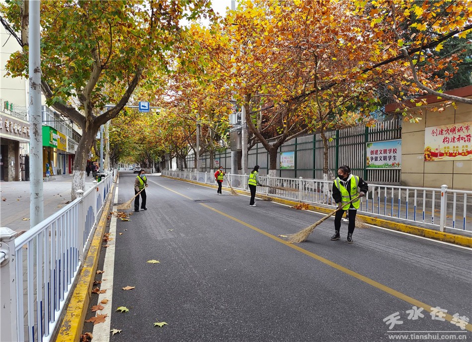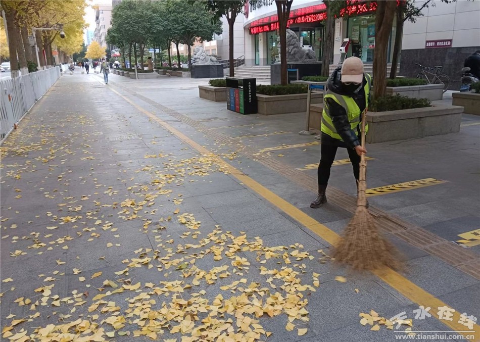 秦州区融媒体中心11月11日讯 连日来的大风天气导致城市大街小巷的行道树出现大范围落叶。为避免落叶造成地面污染,秦州区环卫治理中心及时召开秋冬季落叶清扫保障工作专题会议,成立应急工作专班,迅速开启道路保洁“秋冬模式”,组织人力和设备强化环卫保洁力量,提升落叶清扫频次,全力做好落叶清扫、收集、处置等工作,全力以赴保障城市环境干净整洁。