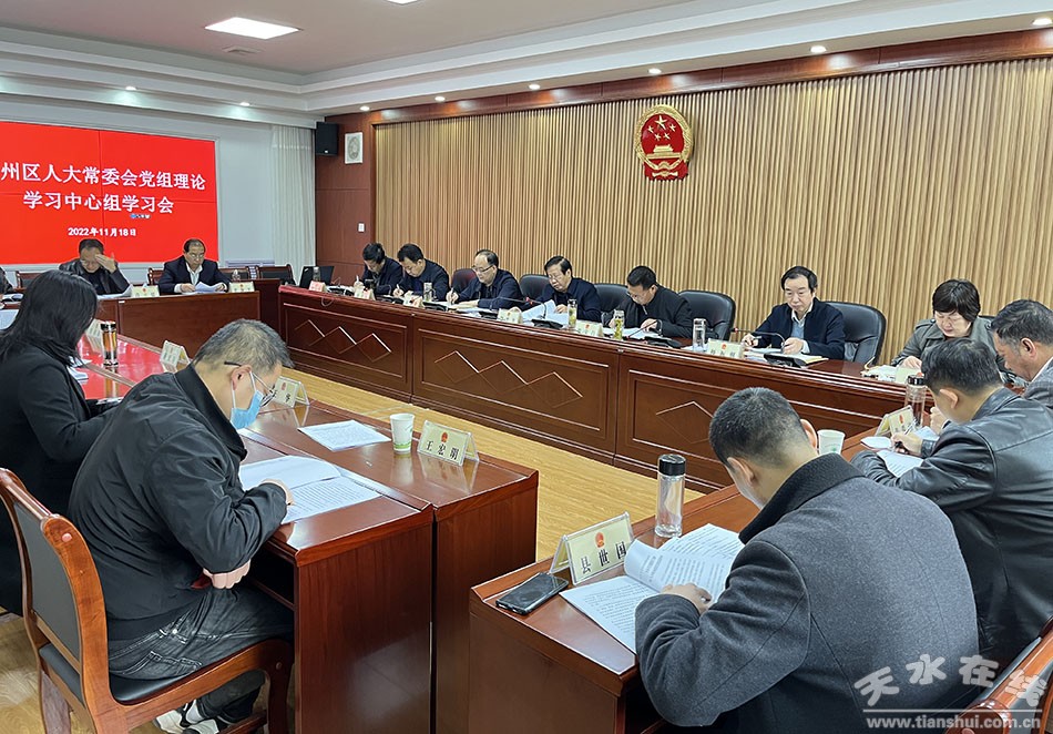 秦州区融媒体中心11月18日讯(记者 张敏)11月18日,秦州区人大常委会召开党组理论学习中心组学习会议,区人大常委会党组书记、主任魏胜奎主持会议。