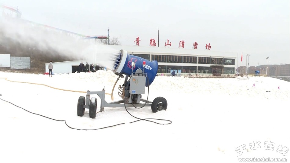 在秦州区平南镇青鹃山滑雪场,员工们进行了岗前培训,滑雪道两台造雪车抓住有利时机加紧造雪。