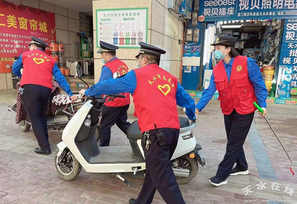 二是狠抓市容环境,擦亮城市底色。按照“整治一处,规范一片”的原则,将农贸市场、校园、医院、商场、车站等周边区域作为重点监管路段,定人定点值守,把市场外溢、乱设摊点、占道经营、乱停乱放等城市乱象作为重中之重,在蔬菜、瓜果上市时段加强巡查力度,采取“错时执勤、延时执法、超时坚守”模式,根治城市管理顽疾。整治行动中共规范店外经营、倚门经商、占道作业11795家,下发《责令限期改正通知书》2320份,发放疫情防控温馨提示牌4500块,清理流动摊点12650余次,规范非机动车辆15747辆,拆除未经审批的户外广告牌130余处,清除破损违法条幅658处,清除乱张贴小广告及破损对联1.4万余处,施划和修补非机动车位1339处,增设各类提示牌、标识牌、宣传牌155块。严格督促落实“门前四包”责任制,推行“红黑脸”考评制度,督促沿街各单位、经营户,将责任区域内的地面、建筑物立面、停放点、秩序、环境、卫生、绿化、设施等对照“五好一高”标准进行维护,让城市底色更清澈。