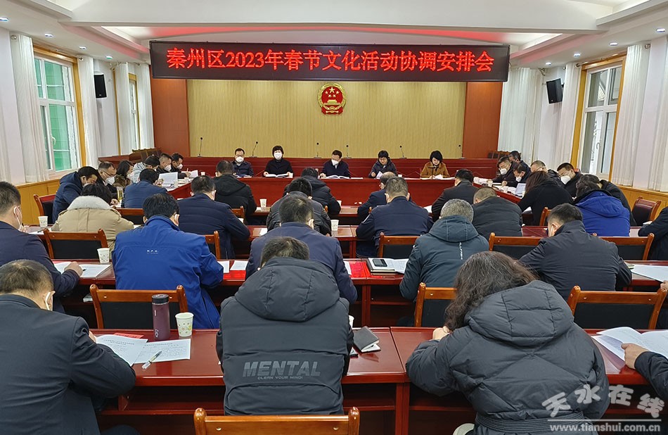 秦州区融媒体中心1月3日讯 (记者 康睿)1月3日,秦州区召开春节文化活动协调安排会。区委副书记王涛出席会议并讲话,区委常委、宣传部部长胡小云,区人大常委会副主任王欢,区政协副主席李永超出席会议。区政府副区长景怡主持会议。