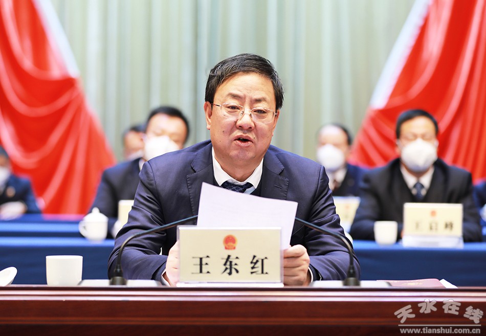 王东红强调,做好人大工作,一要加强党的全面领导,以新理念引领新实践。区人大及其常委会要坚持用习近平新时代中国特色社会主义思想统揽人大工作,以党的二十大精神统领、谋划和推进人大各项工作,坚决做到与区委同心协力、同频共振、同向发力,推动人大工作不断迈上新台阶。二要紧紧围绕中心大局,以新担当开创新局面。认真践行以人民为中心的发展思想,扎实办好民生实事,千方百计解决好群众教育、就业、医疗、养老等急难愁盼问题,全力保障和改善民生,不断增强人民群众获得感、幸福感、安全感。三要坚持依法行使权力,以新作为实现新目标。区人大及其常委会要深入学习贯彻习近平总书记关于坚持和完善人民代表大会制度的重要思想,持续加强和改进人大工作,确保中央和省、市、区委决策部署在人大工作中全面贯彻落实。四要不断加强自身建设,以新作风凝聚新力量。以党的政治建设为统领,全面加强人大机关政治、思想、组织、作风、纪律和制度建设,推动党组织建设全面进步、全面过硬,用实际行动诠释“人大代表为人民”的履职担当,为全面建设中国式现代化秦州而团结奋斗。