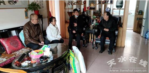 1月14日,民进天水市秦州区委会副主委张晶,秘书长刘喜文带领骨干会员开展春节前走访慰问活动,感谢他们多年来对民进工作做出的贡献,为他们送去组织的亲切关怀和新春祝福。