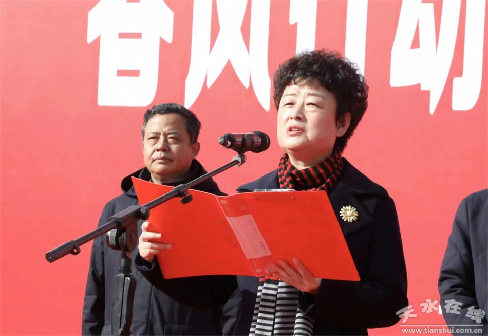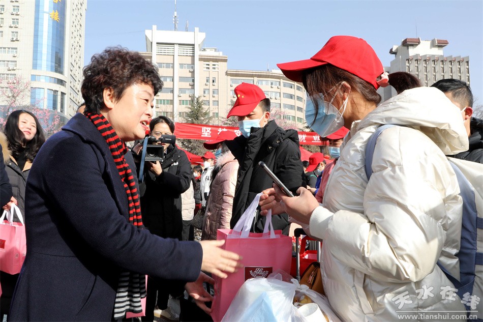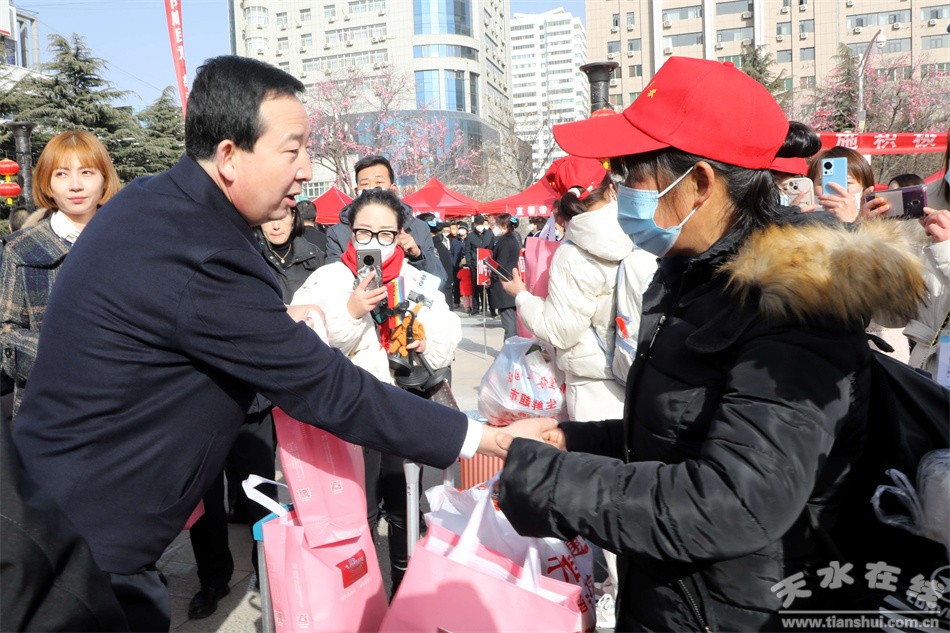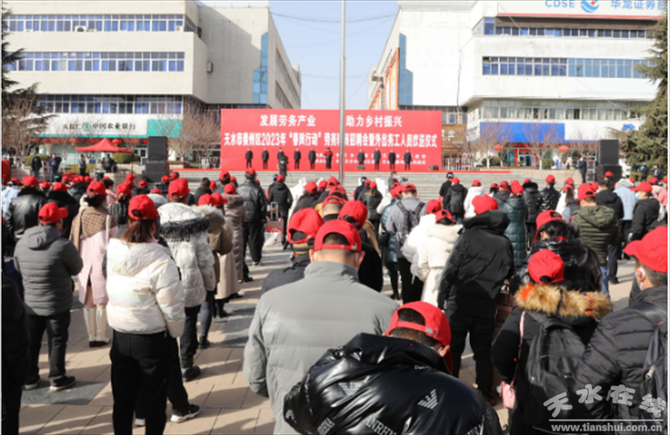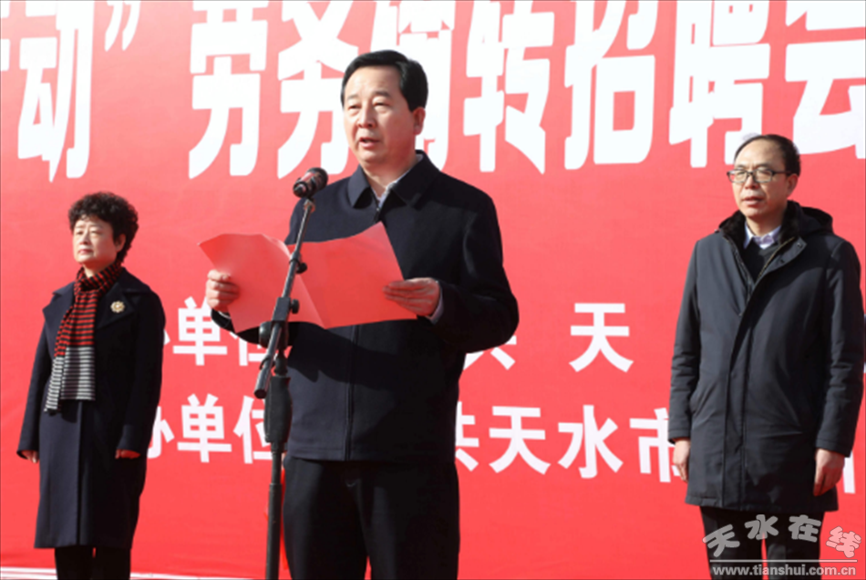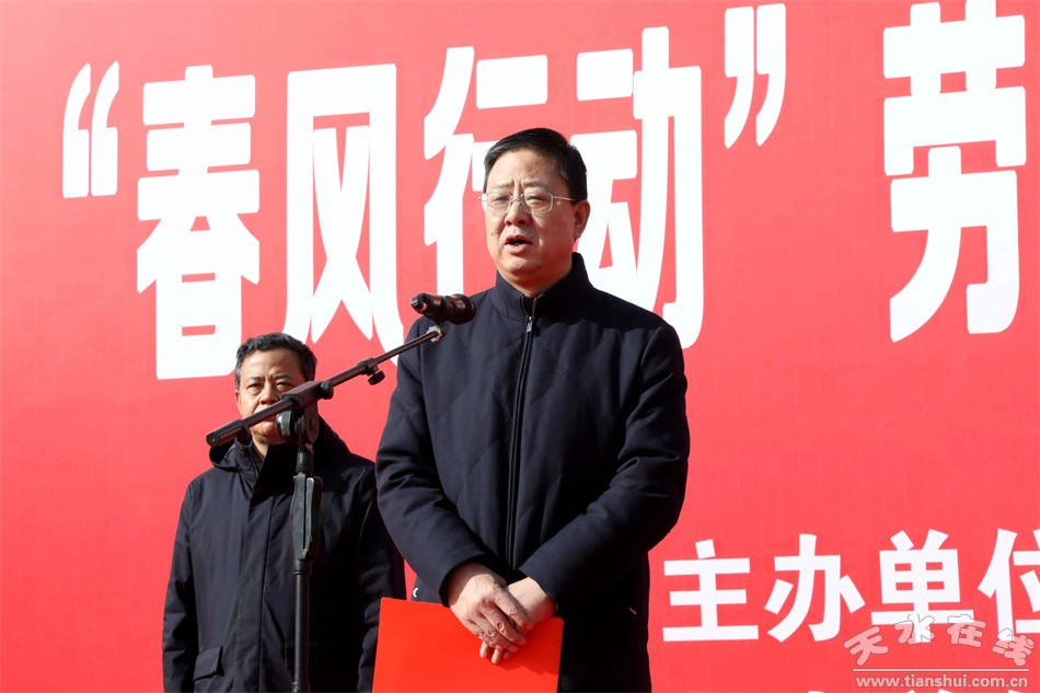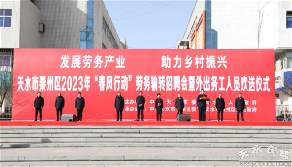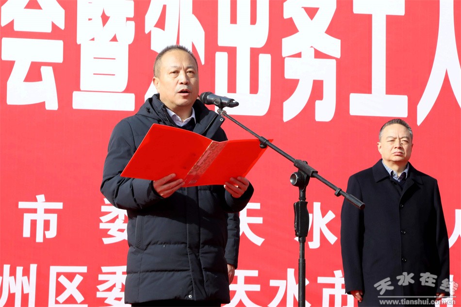 (市委常委、秦州区委书记王东红宣布2023年“春风行动”劳务输转招聘会暨外出务工人员欢送仪式开始)