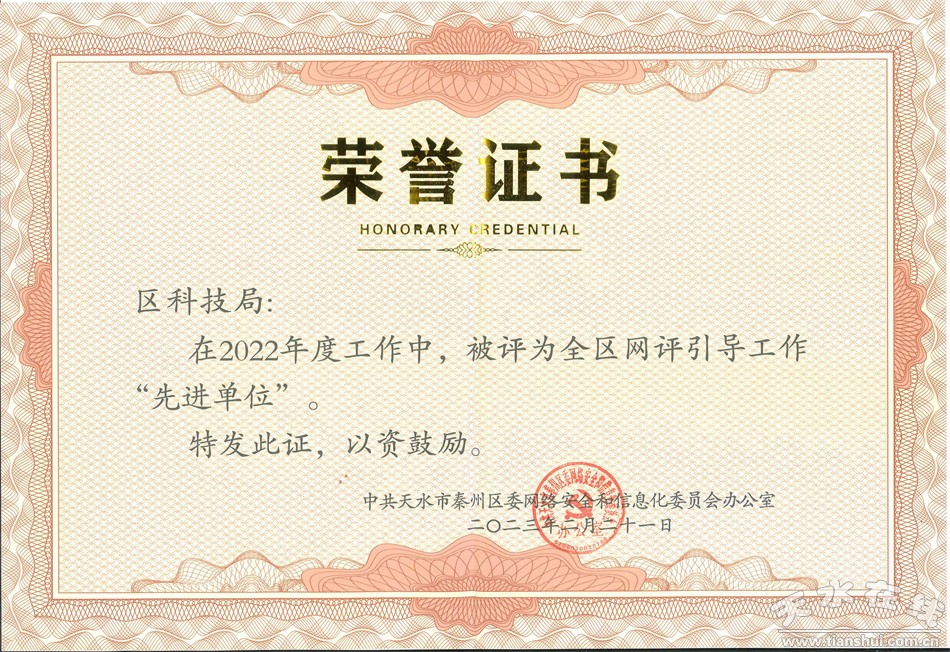 秦州区融媒体中心2月24日讯 近日,秦州区网信办召开网络意识形态工作会议,区科技局获“2022年度全区网评工作先进单位”称号。