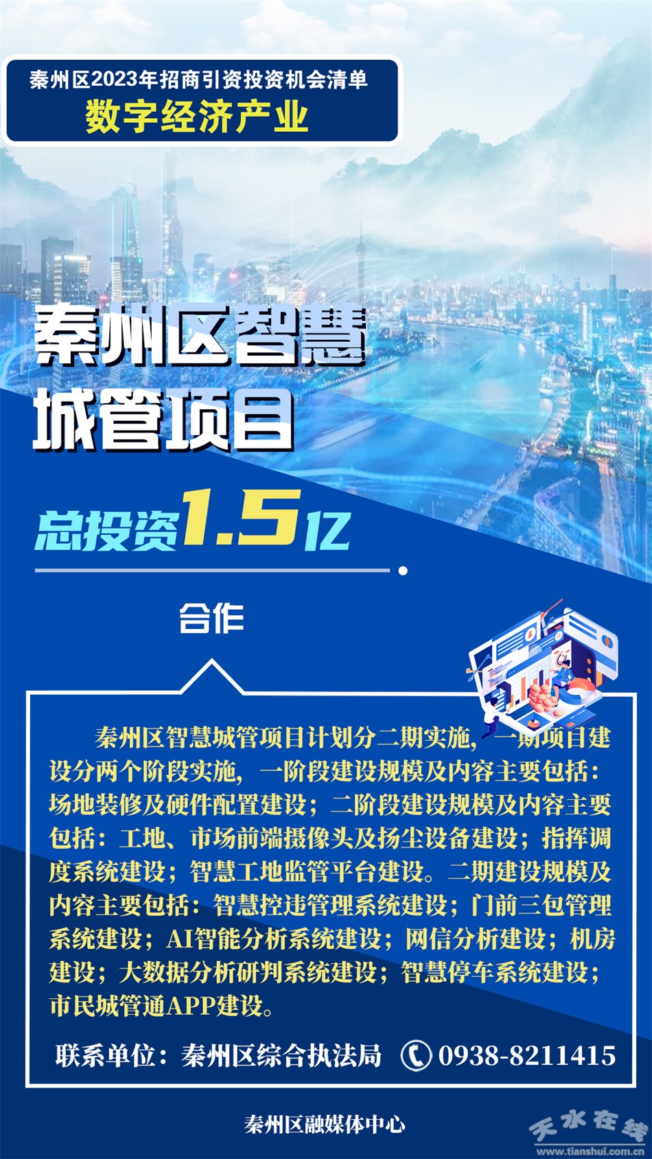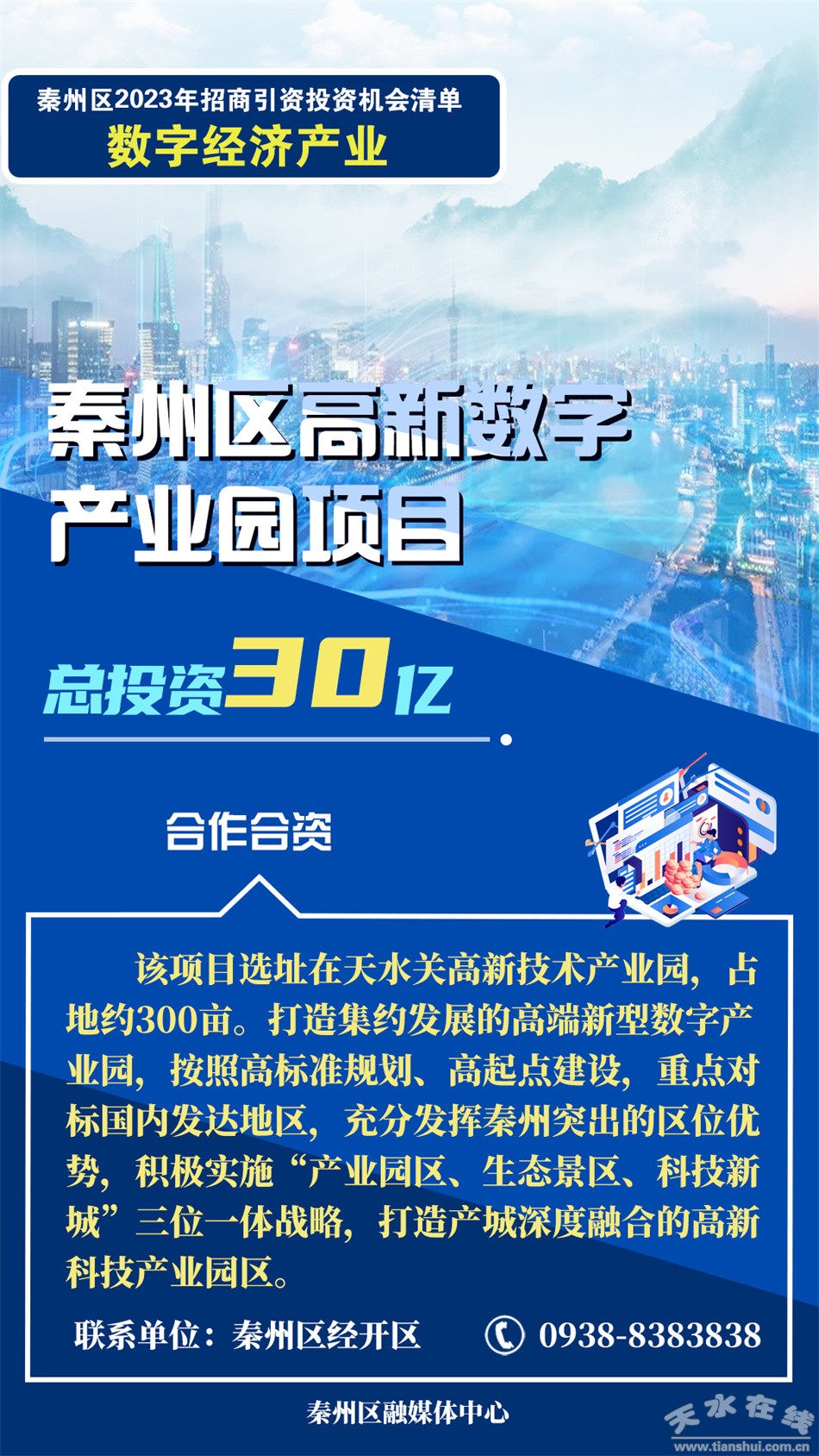 秦州区2023年招商引资投资机会清单(数字经济产业)