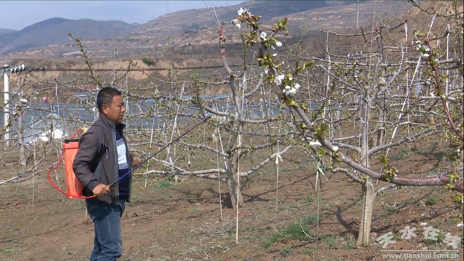“村里的广播上说有霜冻,打上防冻液防低温,我有四亩樱桃,已经打完了。”中梁镇马家庄村村民马金来说。