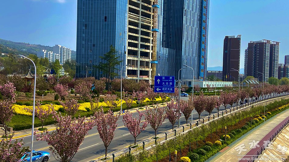 在成纪大道、藉河风情线沿线,记者看到,抽出新枝的杨柳随风舞动,各类花卉竞相绽放,春意盎然。公园里、花坛旁、处处可以看到休闲娱乐、锻炼身体、呼吸新鲜空气的市民。