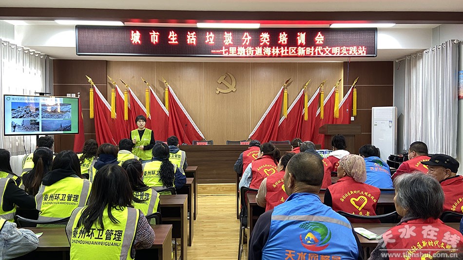 秦州区融媒体中心5月8日讯 (记者 赵婷)5月6日,七里墩街道海林社区举办“城市生活垃圾分类”培训会。