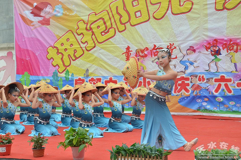 苏城中心小学举行了庆“六一”文艺汇演活动。演出在六年级同学的腰鼓表演中拉开了帷幕,紧接着举行了全体唱国歌仪式。各班的节目真是百花齐放,各有千秋。有儿童舞蹈《一年级》《大梦想家》、合唱《大中国》等;四年级群舞《孩子的天空》;经典朗诵《少年中国说》;独舞表演《丝路幻影》;五年级的舞蹈《童心向党》;小品、健美操等。舞台上小演员们的表演惟妙惟肖;舞台下,家长们纷纷拿起相机、手机记录每一个精彩的瞬间。一个个风格迥异,独特别致的节目将演出推向了一个又一个高潮。学校的操场成了一个巨大的舞台,歌声传递心声,掌声伴着笑声,孩子们天真活泼的表演,博得了台下师生和家长的阵阵掌声。