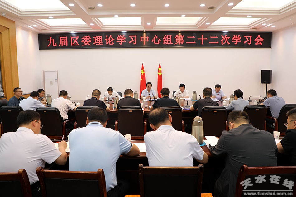秦州区融媒体中心6月12日讯(记者 邵千)6月12日,市委常委、区委书记王东红主持召开区委理论学习中心组学习会,集中学习了习近平总书记在中共中央政治局第五次集体学习时的重要讲话精神、习近平总书记在二十届中央国家安全委员会第一次会议上的重要讲话精神、习近平总书记在内蒙古巴彦淖尔考察并主持召开加强荒漠化综合防治和推进“三北”等重点生态工程建设座谈会上的重要讲话精神、习近平总书记在文化传承发展座谈会上的重要讲话精神、《中华人民共和国公务员法》和《甘肃省干部荣誉退休工作制度(试行)》。