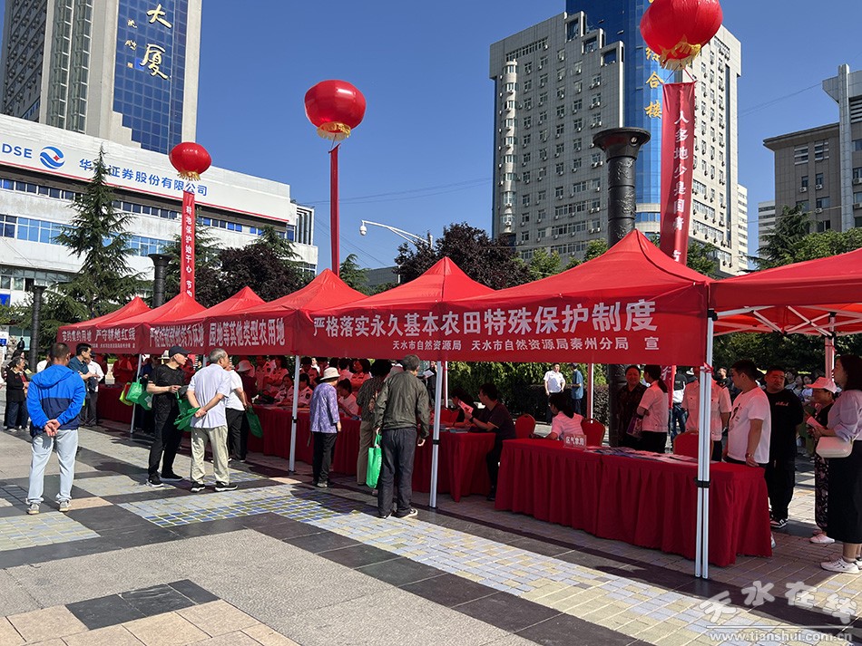 秦州区融媒体中心6月25日讯(记者 王歧)6月25日是第33个全国“土地日”,今年“土地日”的宣传主题是“节约集约用地,严守耕地红线”。当天,市区相关部门在龙城广场联合开展第33个全国“土地日”主题宣传活动,市委常委、常务副市长贾义翔,市政府副秘书长左绍君,区委常委、常务副区长张维有出席活动。