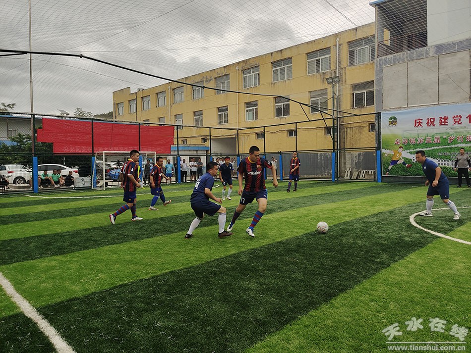 秦州区融媒体中心6月28日讯(记者 张敏)6月27日,秦州区皂郊镇在店镇村村委会院内足球场举办庆祝中国共产党成立102周年暨第三届“乡村振兴杯”足球邀请赛。皂郊镇政府、皂郊镇驻村帮扶工作队、秦州农合行、市公安局、天水电信等10支业余足球队参赛。