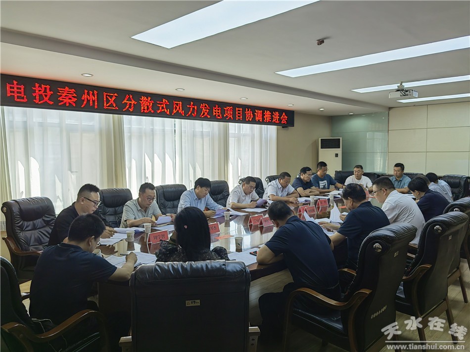 秦州区融媒体中心9月2日讯 9月1日,秦州区与国家电投集团邢台新能源发电有限公司召开分散式风力发电项目协调推进会。区委常委、政法委书记何炜巍主持会议并讲话,区政协副主席李红军,国家电投集团邢台新能源发电有限公司党委书记、董事长李兵出席会议。