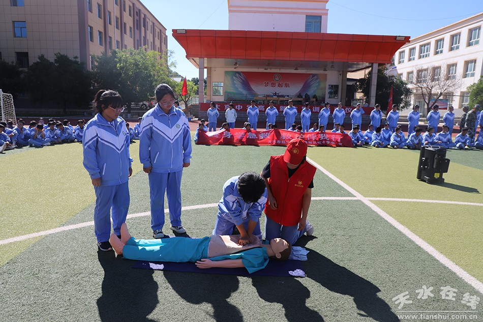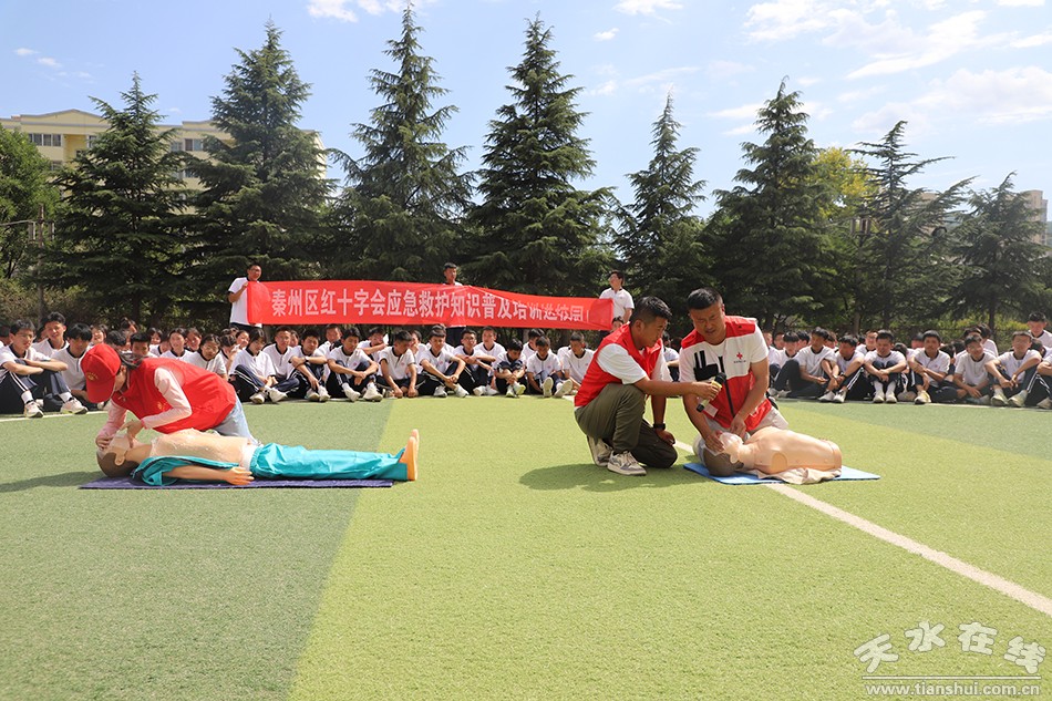 秦州区融媒体中心9月5日讯 近日,秦州区红十字会利用秋季开学高一级新生军训的有利时机,走进天水市第三中学、天水市田家炳中学、秦州区长城中学、秦州区太京中学、秦州区玉泉中学、天水市蓓蕾高级中学,对正在军训的3600多名高一级新生进行了应急救护知识培训进校园活动。