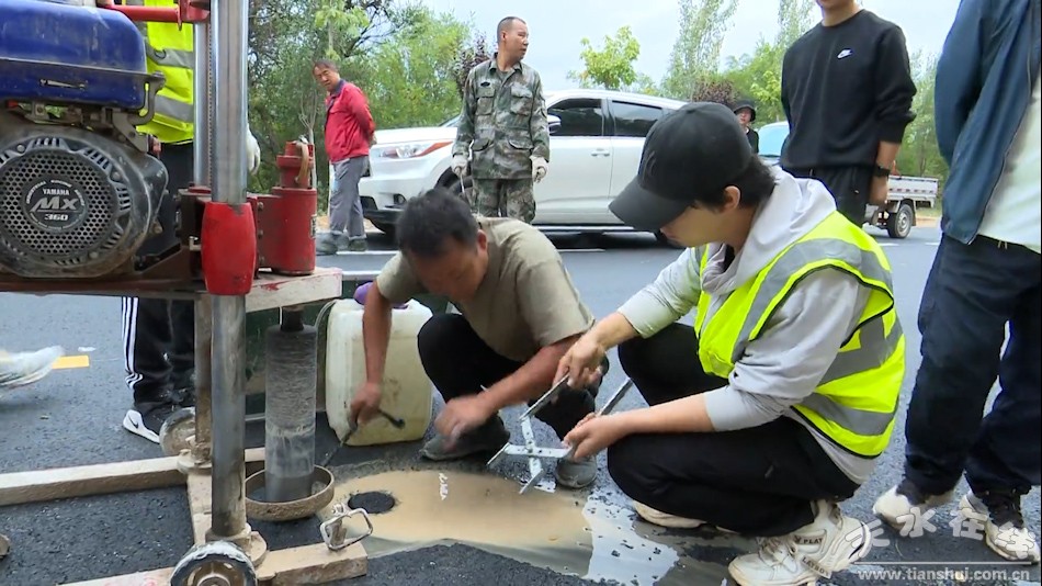 “标线厚度、标线逆反射系数都能达到设计和检验评定标准的要求,边沟的结构尺寸也都符合设计要求,路面芯样的厚度,也符合设计要求,芯样厚度要求大于等于5公分,都在5.5公分左右。”天水市交通建设工程质量检测中心有限公司检测工程师李子哲说。
