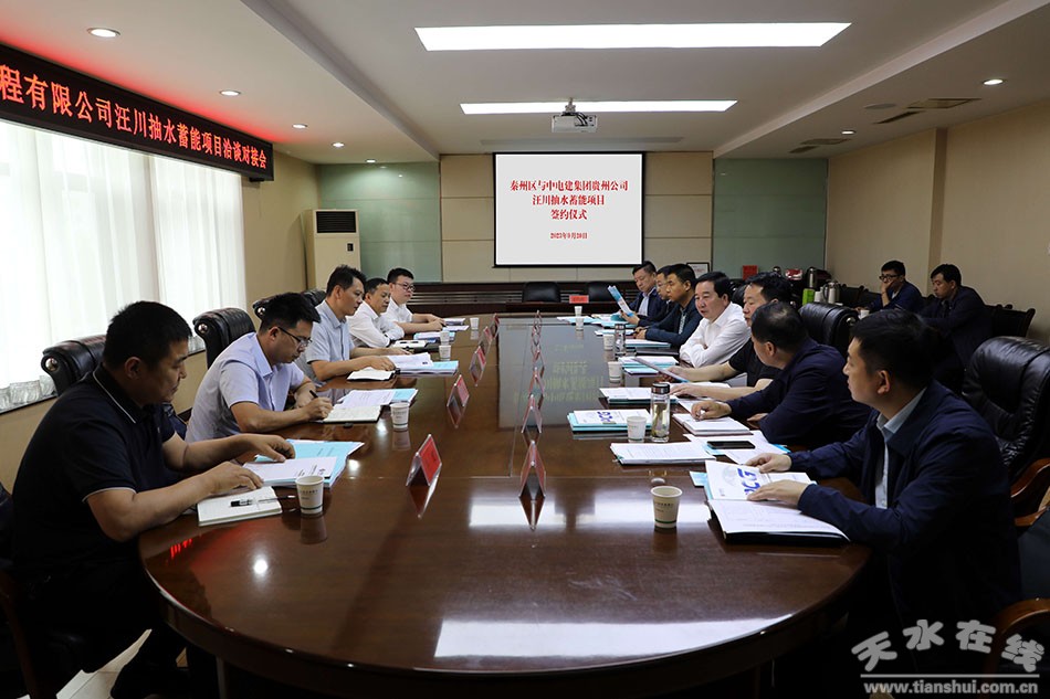 秦州区融媒体中心9月21日讯(记者 张继明)9月20日,秦州区与中国电建集团贵州工程有限公司就汪川抽水蓄能项目进行洽谈对接,并举行签约仪式。秦州区委副书记、区长孟晓龙主持签约仪式。