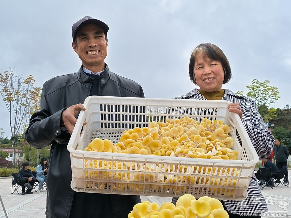 “我种的平菇产量高、收入好,一年卖7至8万元到10万元左右,这个榆黄蘑是我今年刚试种的,产量也好。今天参加丰收节,我很高兴,对我产品宣传一下,让我的榆黄蘑还有平菇能很快地卖出去。”平南镇大柳树村彬结种养殖家庭农场负责人魏启兴说。