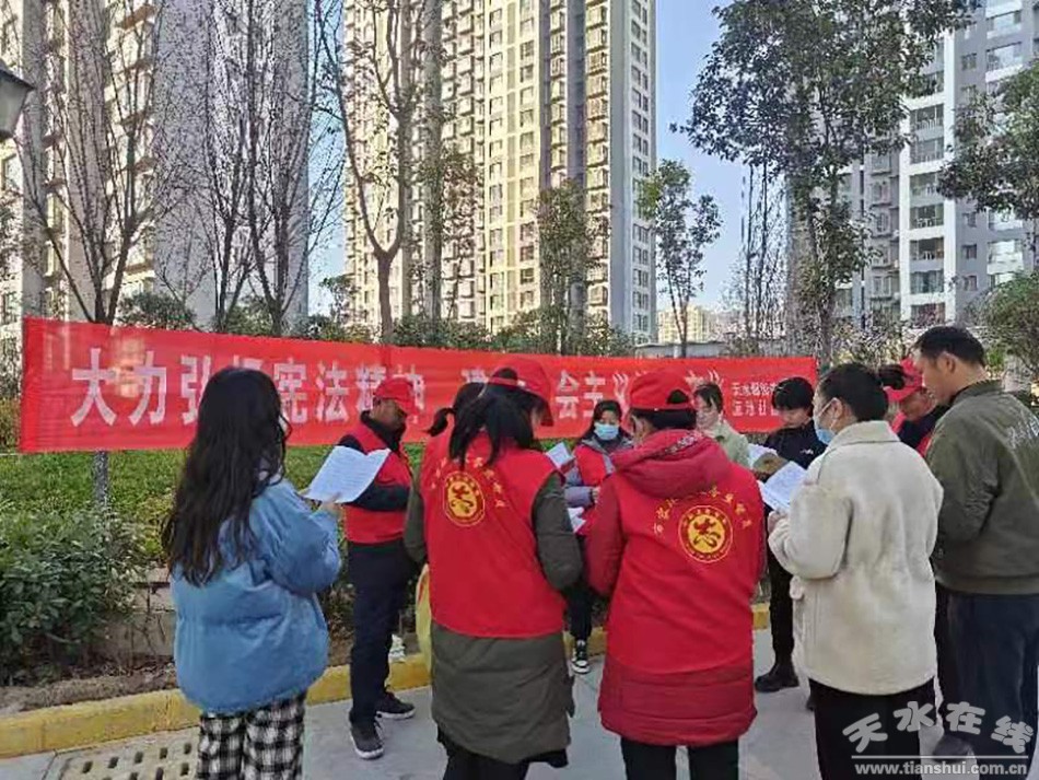 秦州区融媒体中心12月4日讯 12月4日是我国第十个国家宪法日,为大力弘扬宪法精神,维护宪法法律权威,秦州区各街道社区广泛开展宪法学习宣传活动。