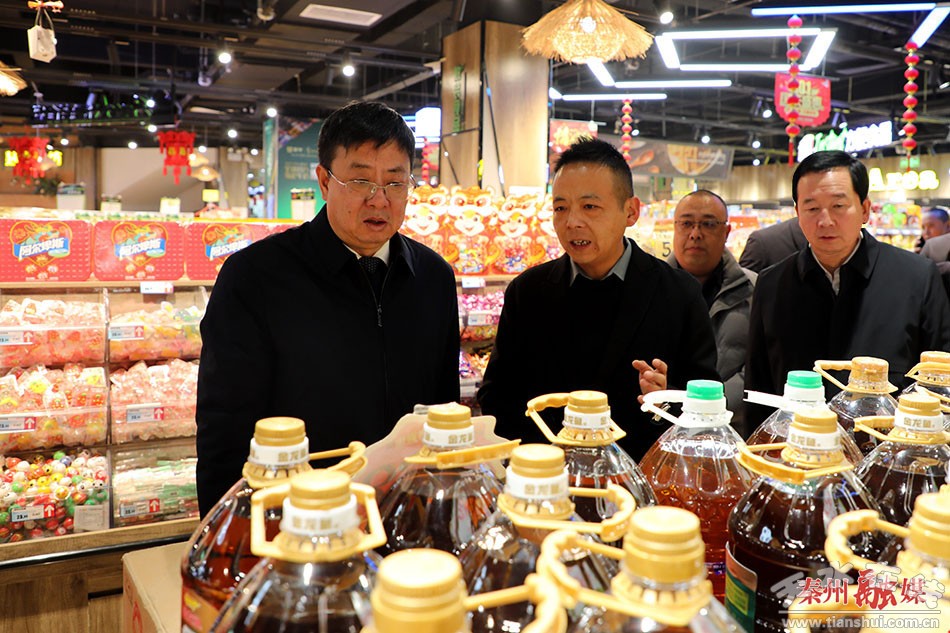 秦州区融媒体中心12月28日讯(记者 邵千)元旦、春节“双节”临近,12月28日,市委常委、秦州区委书记王东红,区委副书记、区长孟晓龙带领有关单位负责人,检查安全生产、市场供应工作,并强调,要坚持人民至上、生命至上,以时时放心不下的责任感,全力做好岁末年初安全稳定和市场保供各项工作,让人民群众度过一个欢乐、祥和、美好的节日。区领导刘越高、毛更生、何炜巍、李东海、田小红参加检查。