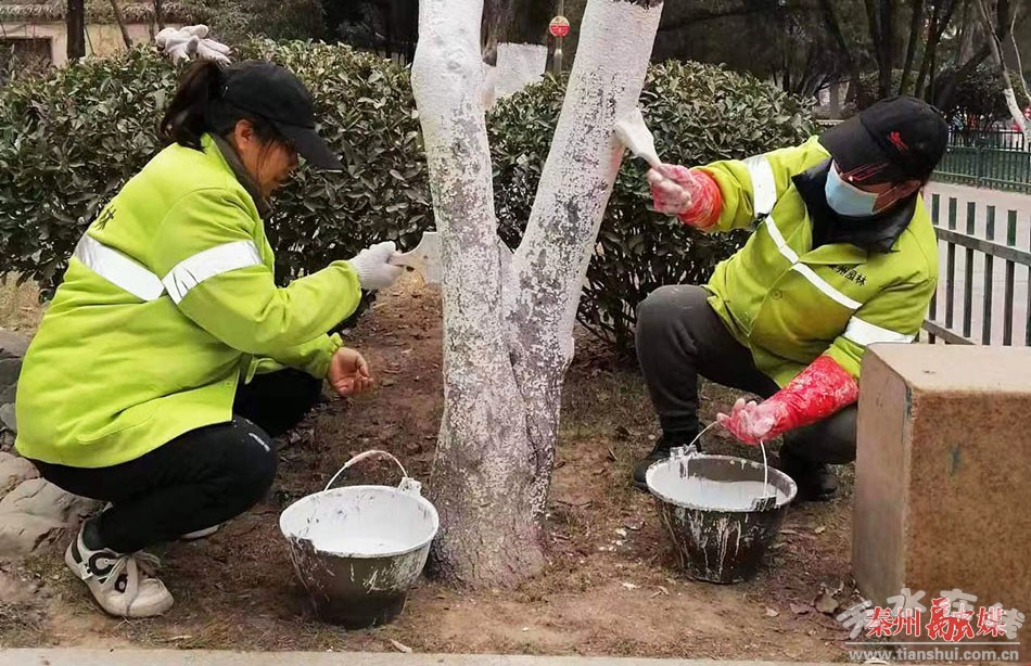 “每天有70多名工作人员,对城区的一万多株行道树进行刷白,整个刷白工作预计在本周末全部完成。”秦州区园林建设服务中心办公室主任杨勇林说。