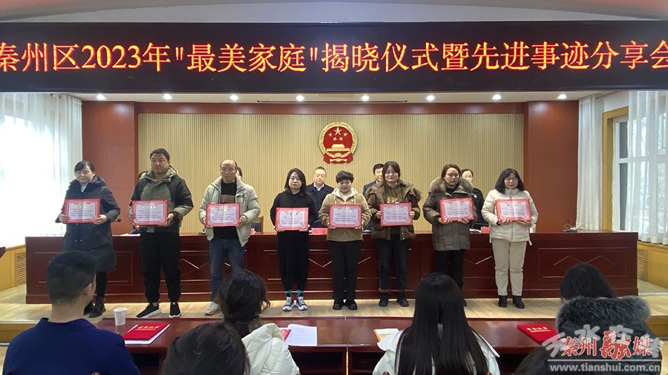 活动中,为荣获秦州区2023年“最美家庭”的53个家庭代表颁发了荣誉证书,并对2024年寻找“最美家庭”活动进行了安排部署。随后,荣获“书香润德”类、“孝老爱亲”类、“科学教子”类最美家庭代表分享了个人的先进事迹。