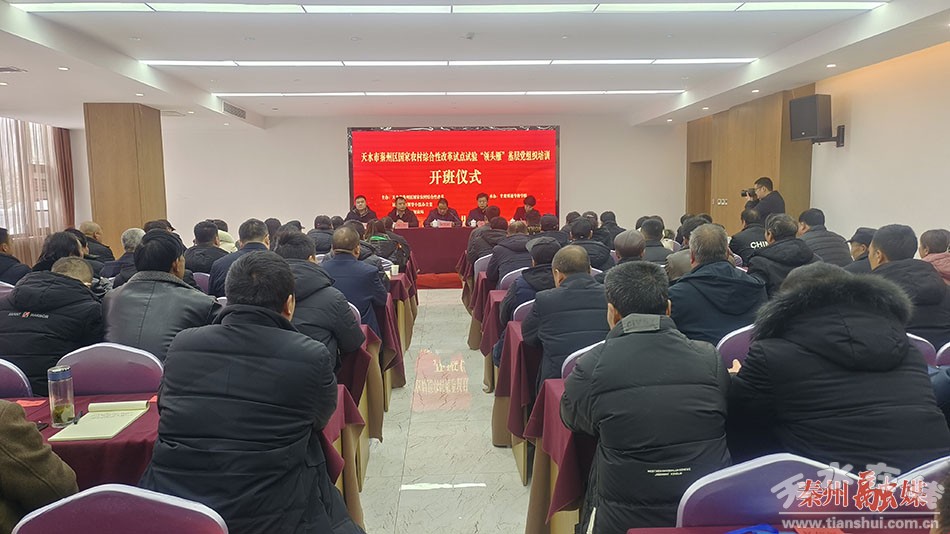 秦州区融媒体中心3月2日讯(记者刘武锋)3月1日,秦州区第一批“领头雁”基层党组织培训班在平南镇孙集村国家农村综合性改革试点试验乡村振兴人才培训基地开班。区政协副主席杨来成出席开班仪式,来自平南镇、天水镇10个试点村的30名村干部、100名农村党员参加培训。