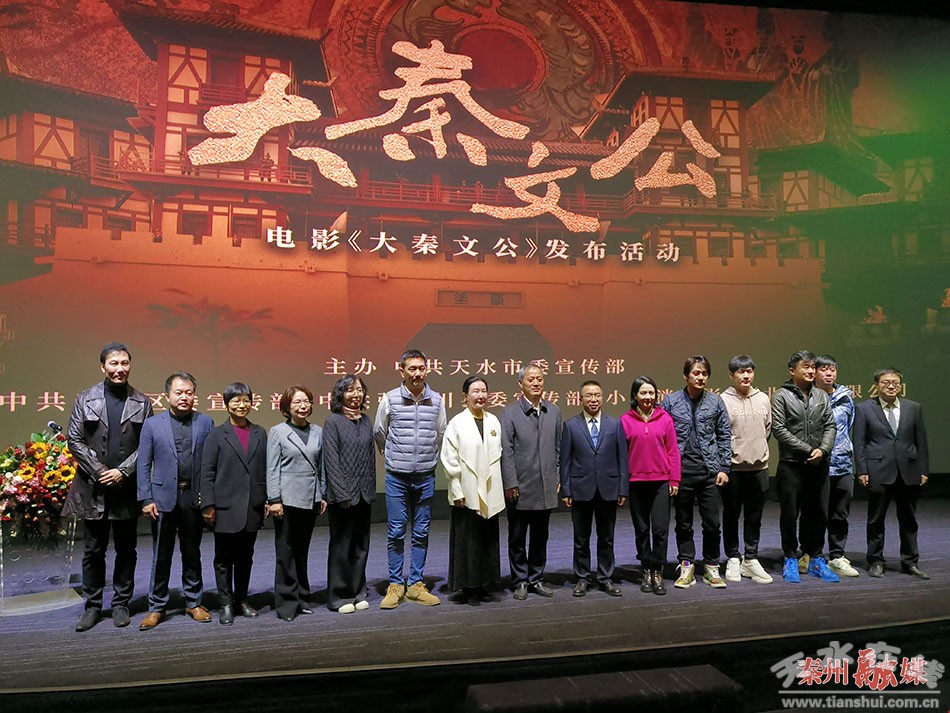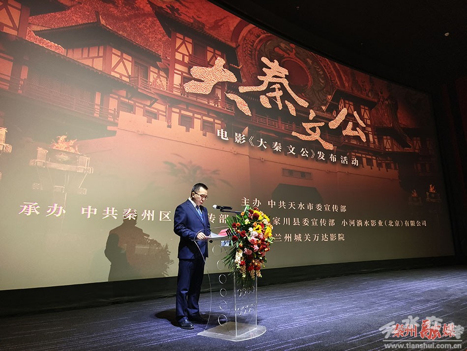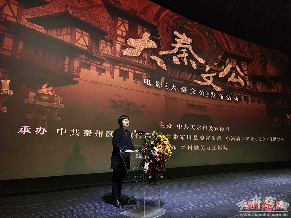 秦州区融媒体中心3月11日讯(记者 崔磊)3月11日上午,由市委宣传部,秦州区委、区政府和张家川县委、县政府联合摄制的电影《大秦文公》在兰州举行发布活动。省委宣传部二级巡视员谢青民、天水市委常委、宣传部部长王文东、省委宣传部电影处处长杨婧、区委常委、宣传部部长胡小云以及电影《大秦文公》总编剧曹锐和电影主创人员代表出席发布活动。