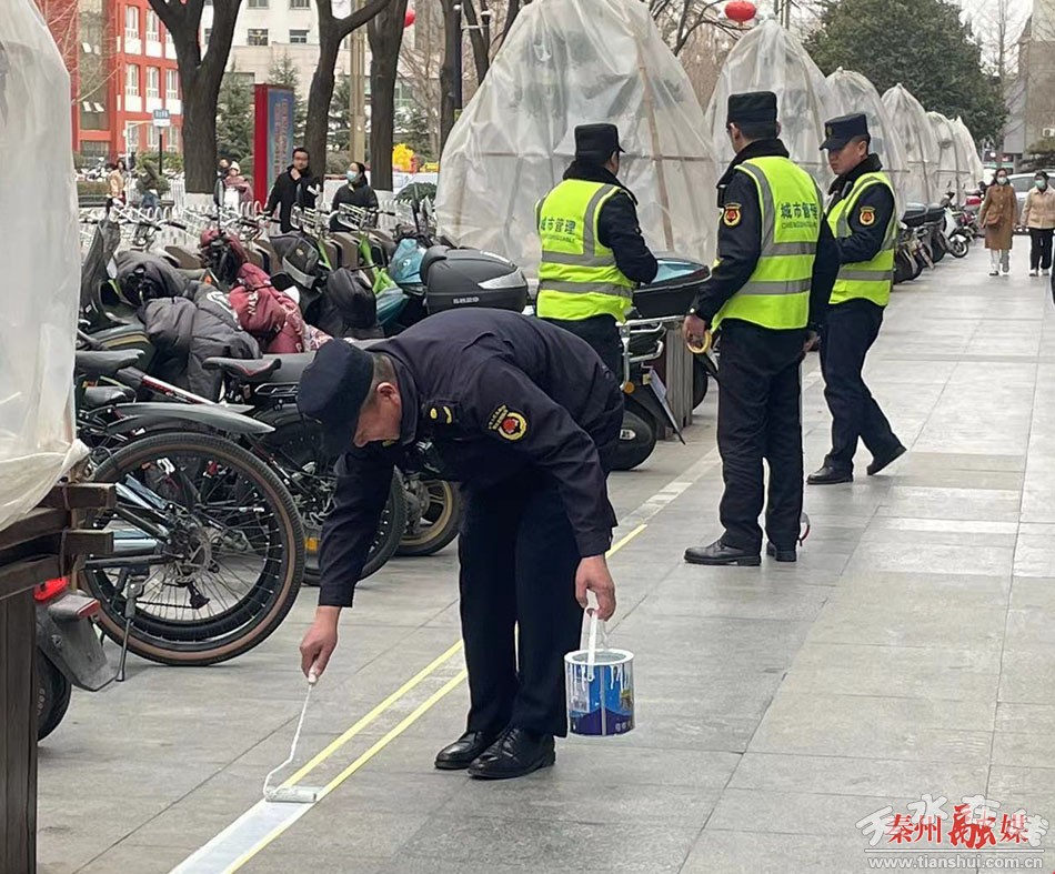 在秦州区青年北路、民主路等地,记者看到,秦州区城市管理综合执法局工作人员正在给非机动车施划停车标识线,线位清晰规范、醒目直观。城管人员还引导市民按照划线,有序停放车辆,确保道路畅通和行人出行安全。