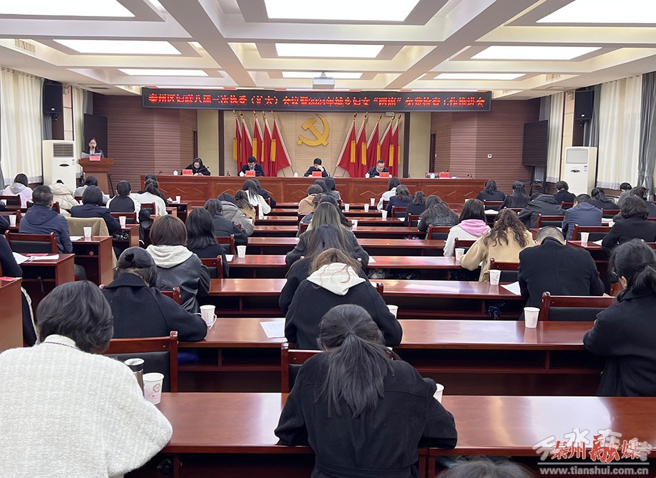 会议传达学习了全国妇联十三届二次执委会议、省妇联十五届二次执委会议、市妇联八届二次执委会议精神;听取了区妇联八届执委会工作报告;通报秦州区2024年城乡妇女“两癌”检查进展情况,并对我区2024年妇女“两癌”免费检查工作做了具体安排部署。