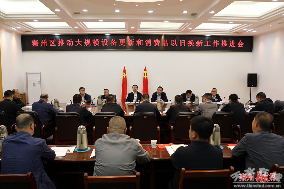会议传达学习了国务院总理李强在国务院推动大规模设备更新和消费品以旧换新工作视频会议上的讲话精神,省委副书记、省长任振鹤在全省大规模设备更新和消费品以旧换新工作推进大会上的讲话精神,听取了秦州区推动大规模设备更新和消费品以旧换新工作进展情况汇报,就全区大规模设备更新和消费品以旧换新工作再安排、再部署。