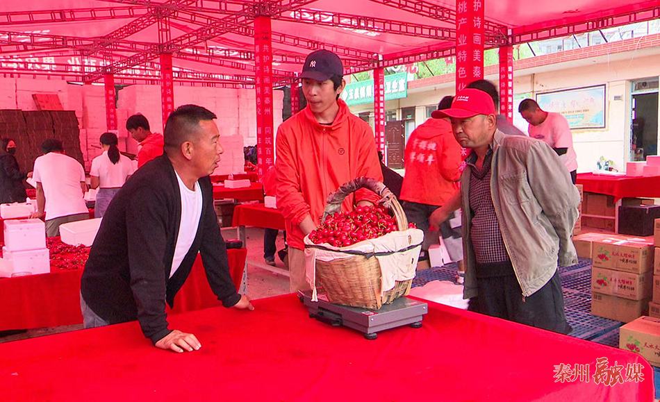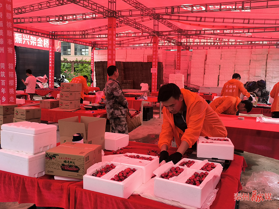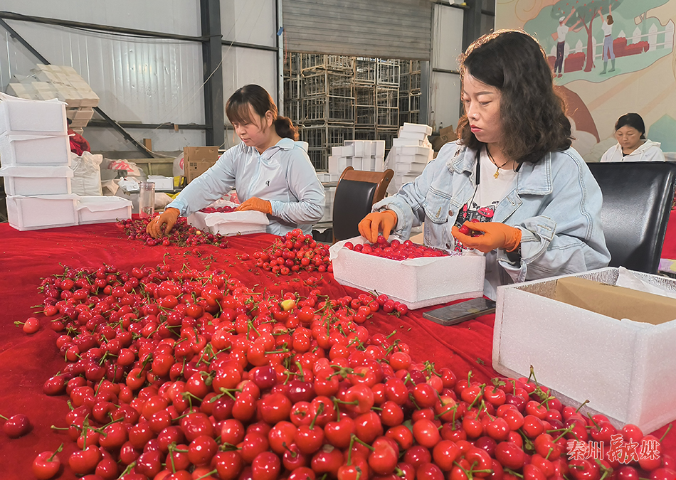 “每一颗都是当天早上现采现摘的新鲜樱桃,都是这种带着绿叶的新鲜樱桃,花青素、维生素、微量元素特别丰富。您看一下这是您的樱桃,满意的话可以截图、录屏……”在藉口镇四十铺村的冷库里,珍果鲜电子商务有限公司的电商直播搞得有声有色。主播在手机前推广接单,后面大姐、小哥们忙着分拣、打包,这种现场挑选、现场展示、现场发货的直播方式获得众多消费者的青睐。