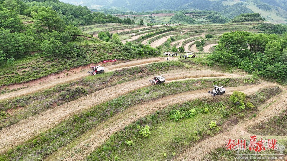 “我今年种了1244亩小麦,今年预计产量(亩产)平均最少要达到800斤,平均一台收割机每天能收割50亩左右。今年机收损失比较小,现在机器的技术也越来越成功了,而且像那些倒伏的也收得非常干净,所以我很满意。”秦州区金大山农民种植合作社负责人刘世元说。
