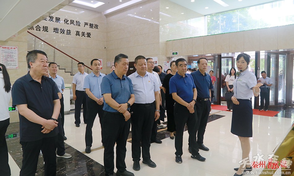 调研组一行来到秦州农村合作银行,通过实地考察、听取介绍、现场交流等方式,详细了解了当前秦州区加强金融监管,有效防范化解金融风险工作的现状以及有效防范化解金融风险工作的做法。
