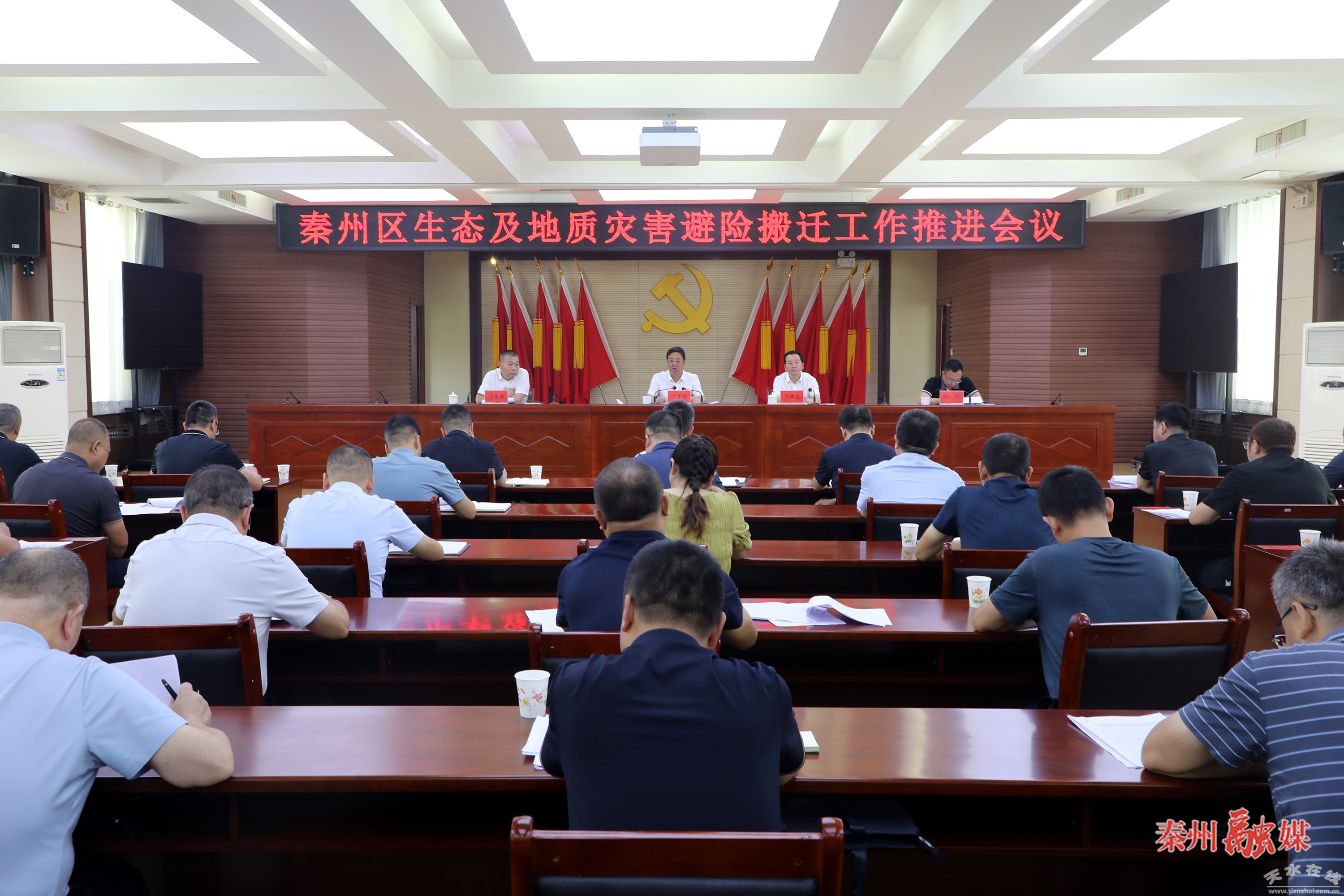 秦州区融媒体中心8月17日讯(记者 邵千)8月17日,秦州区召开生态及地质灾害避险搬迁工作推进会,贯彻落实省、市相关会议精神,分析生态及地质灾害避险搬迁工作中存在的问题,安排部署下一阶段重点任务。市委常委、秦州区委书记王东红出席会议并讲话。区委副书记、区长孟晓龙主持会议。