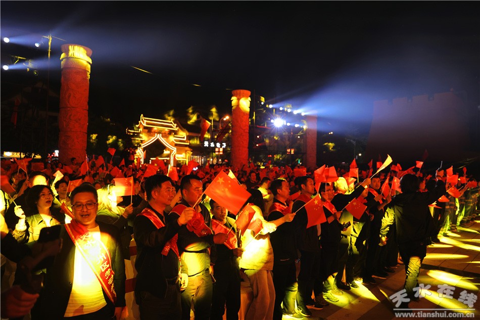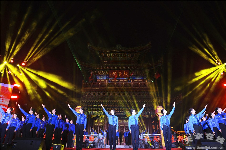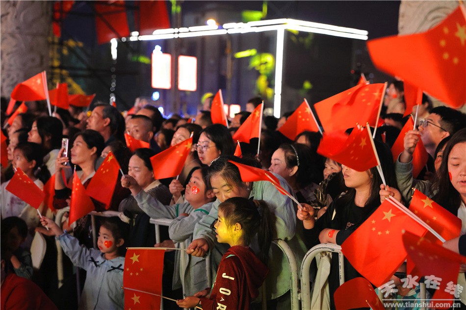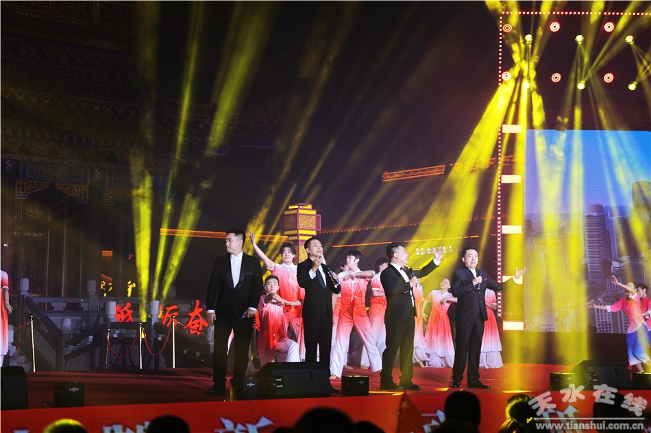 用歌声赞美祖国,用舞蹈抒发热爱。此次灯光音乐晚会将灯光艺术与音乐表演巧妙融合,歌曲《祖国颂》《春天的故事》《青春正中国》,舞蹈《奋进吧天水》《幸福绽放》等精彩节目一一呈现,绚丽多彩的灯光秀和天水古城古韵相得益彰,为观众带来全方位立体式的感官体验。