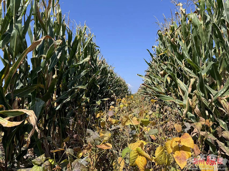 在菊爱农场千亩大豆玉米复合种植基地,800亩大豆玉米带状复合种植进入收获期,饱满金黄的玉米与整齐划一的大豆植株,高低错落,风景如画。今年,秦州区菊爱农场共种植玉米1400亩,其中大豆玉米带状复合种植800亩、单作玉米600亩,最大程度发挥了土地效益。