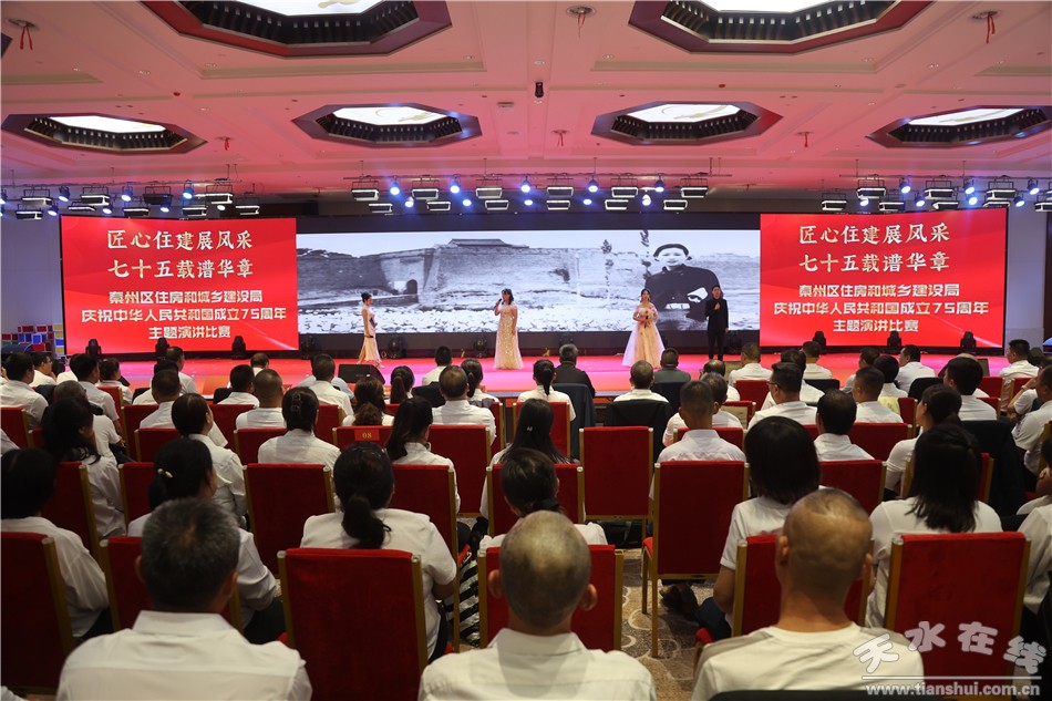 秦州区住建局举办庆祝中华人民共和国成立75周年“匠心住建展风采 强国复兴贺华诞”主题演讲比赛。9支代表队,以回首革命峥嵘岁月、歌颂祖国辉煌成就、讲述城建发展故事、谱写改革崭新篇章等为主线,从城市道路桥梁建设完善、公共基础设施精细化管养护、老旧小区改造、城市园林绿化生态品质提升、精致精品街景打造、城市排涝抢险等多元角度切入,全方位讲述秦州城建事业发展故事和城市的发展变化。