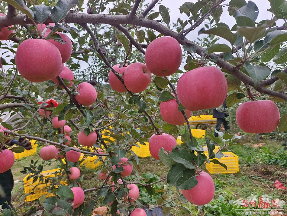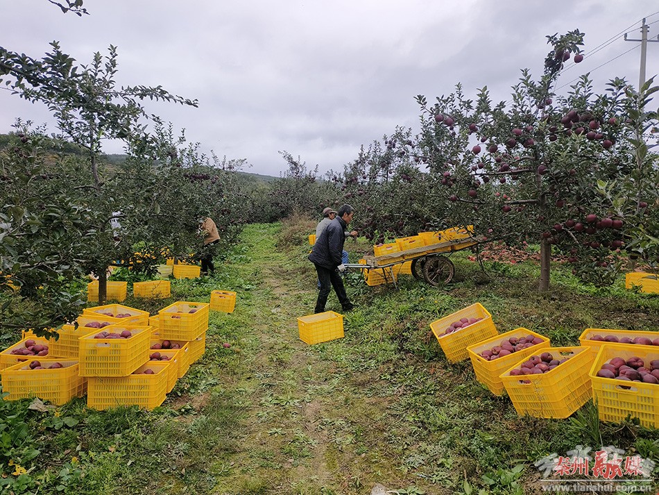 在华岐镇的果园里,红艳艳的苹果挂满了枝头。果农们正忙着采摘,运送苹果的农用三轮车在田间往来穿梭,处处一派繁忙的丰收景象。得益于天水市果树研究所技术人员的精心指导和果农的精细化管理,果园的苹果色泽透亮,口感香甜,品质纯正。