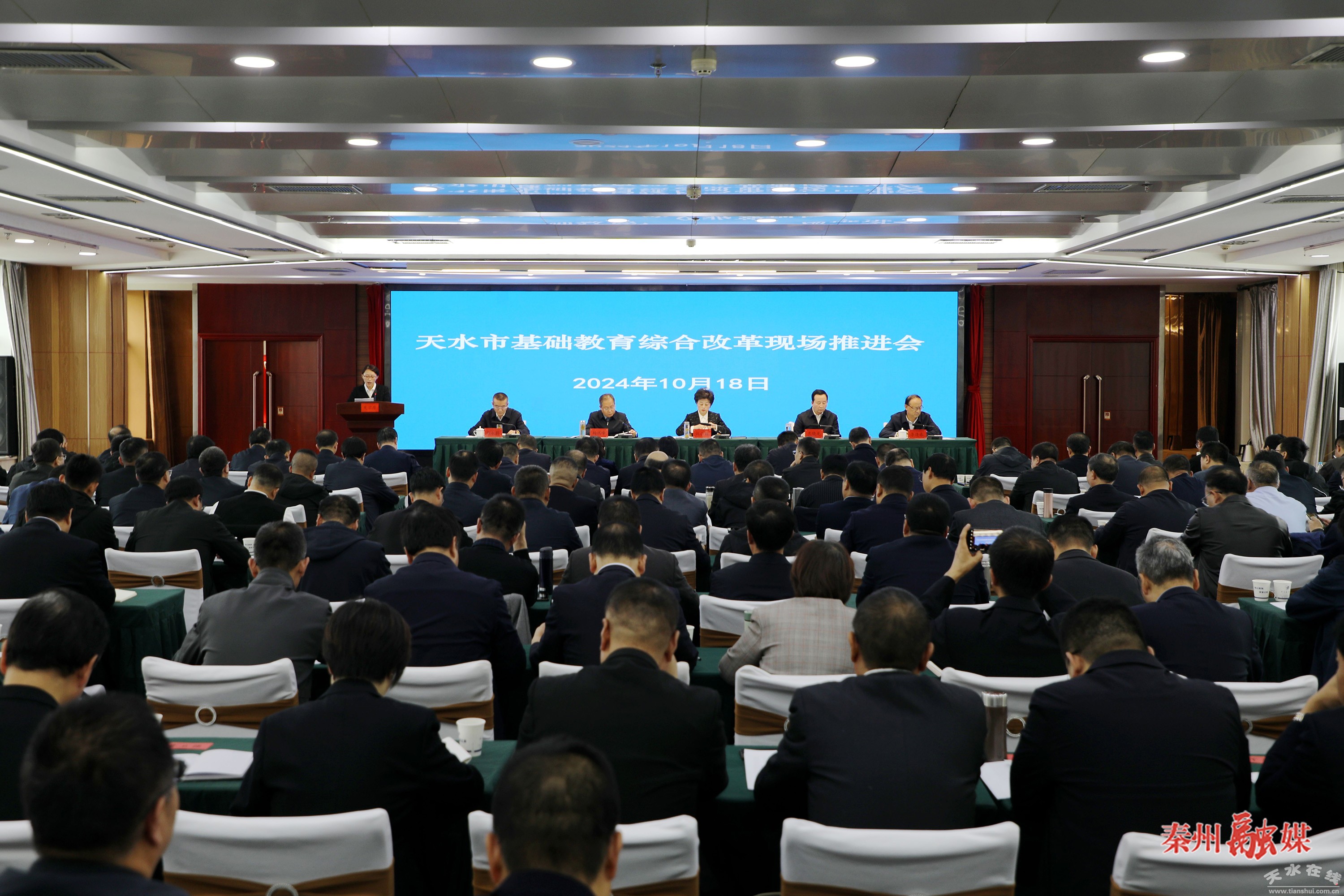 秦州区融媒体中心10月19日讯(记者 张继明 崔磊)10月18日,天水市基础教育综合改革现场推进会在秦州区召开,市政府副市长汪小娟出席会议并讲话,秦州区委副书记、区长孟晓龙致辞,市教育局党组书记、局长杨瑞峰,市政府办公室副主任李逢春,市教育局党组成员、总督学张永蔚出席。