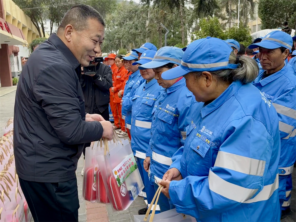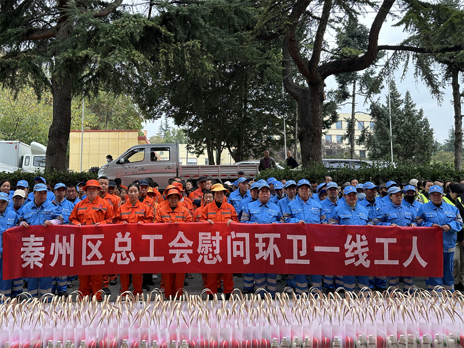 节日慰问送关爱,贴心温暖环卫人。10月24日,秦州区总工会开展了慰问环卫工人活动,活动中为200名环卫工人发放了装有洗发水、毛巾、香皂、医药急救包等各类物品的爱心礼包。同时,区环卫中心班子成员深入一线与环卫工人进行亲切交流,了解他们的工作生活情况,肯定他们不辞辛苦、爱岗敬业的奉献精神,并为20名表现突出、家庭困难的环卫职工发放慰问品,送上节日祝福。