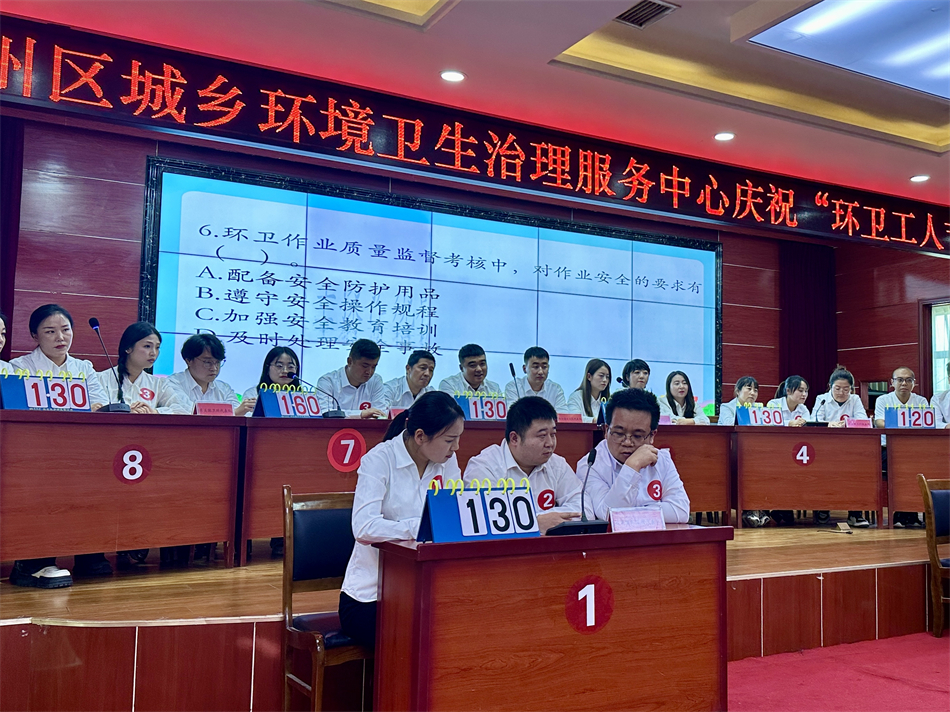 知识竞赛展风采,精益求精当尖兵。在10月23日,区环卫中心2024年庆祝“环卫工人节”知识竞赛中,竞赛内容涵盖围绕垃圾分类知识、秦州区环卫作业规范、秦州区环境卫生作业质量考核标准等内容。由各部门组成8支代表队、24名参赛选手表现出色,此次知识竞赛活动,展示出了扎实的环卫保洁知识水平和业务能力,即促进了环卫职工之间相互学习、提升了本领、也赛出环卫风采。