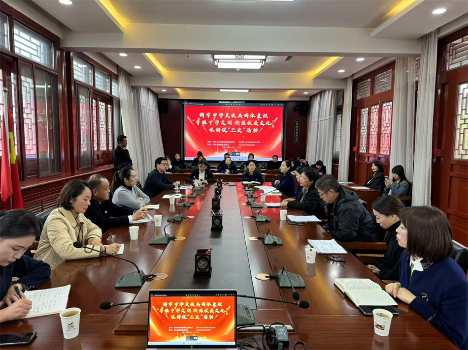 座谈会上,天水市博物馆伏羲祭典保护传承中心主任郑文玉以《传承伏羲文化铸牢中华民族共同体意识》为主题,从传承弘扬伏羲文化的意义、天水市宣传讲解伏羲文化的过程中如何发挥伏羲文化的优势,以及平凡的岗位心向璀璨三个方面进行了交流分享。双方导游代表就伏羲文化在铸牢中华民族共同体意识、促进民族团结进步、助推两地社会经济发展方面等进行了交流座谈。