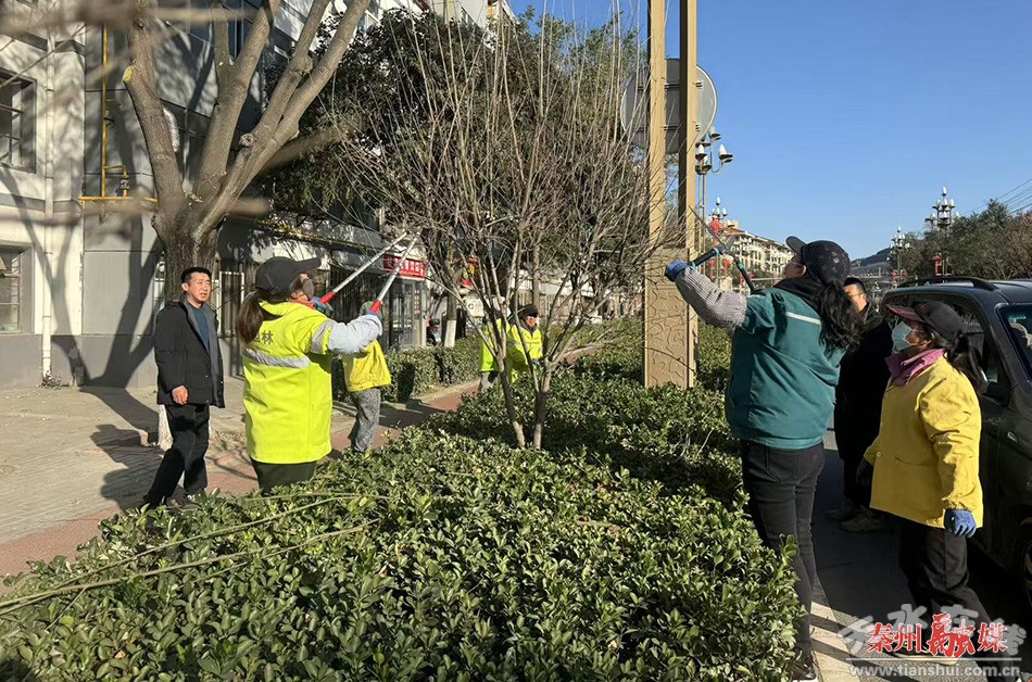 “对于行道树的冬剪主要是修剪直立枝、交叉枝、下垂枝,经过修剪之后能够让树形更加优美、好看。对于花灌木的修剪,主要是修剪来年夏季开花的花灌木,通过冬季的修剪,能够促进它来年开的花更多,更加鲜艳。”秦州区园林建设服务中心党总支副书记杨勇林说。
