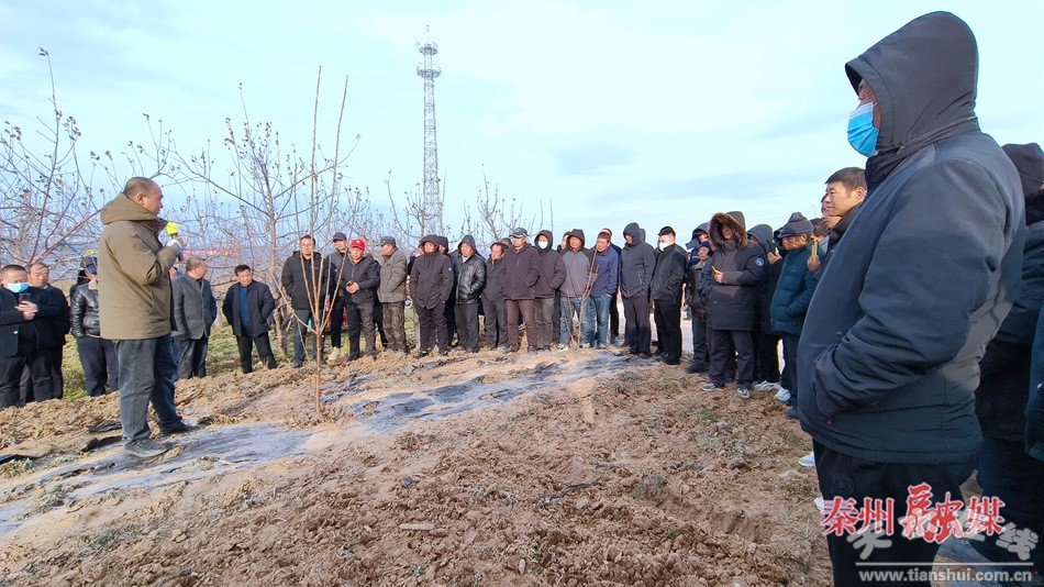 秦州区融媒体中心12月20日讯(记者 高世飞)近日,秦州区果园改造提升暨果园管理现场培训会在中梁镇三湾村举行。市委常委、区委书记康泰来出席培训会并讲话,区领导冯荣、卢军明参加。