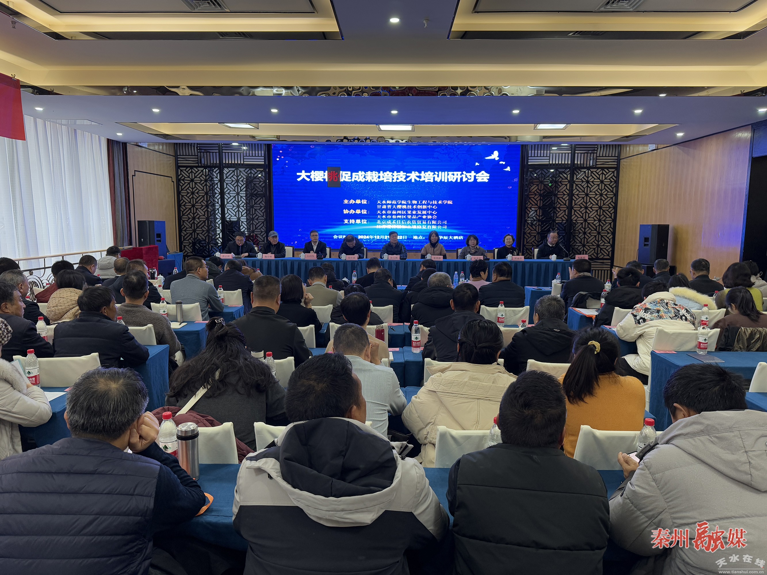 秦州区融媒体中心12月23日讯(记者 赵婷)12月21日至22日,由甘肃省大樱桃技术创新中心、天水师范学院生物工程与技术学院主办,秦州区果业发展中心、果品产业协会协办的大樱桃促成栽培技术培训研讨会在秦州区举行。